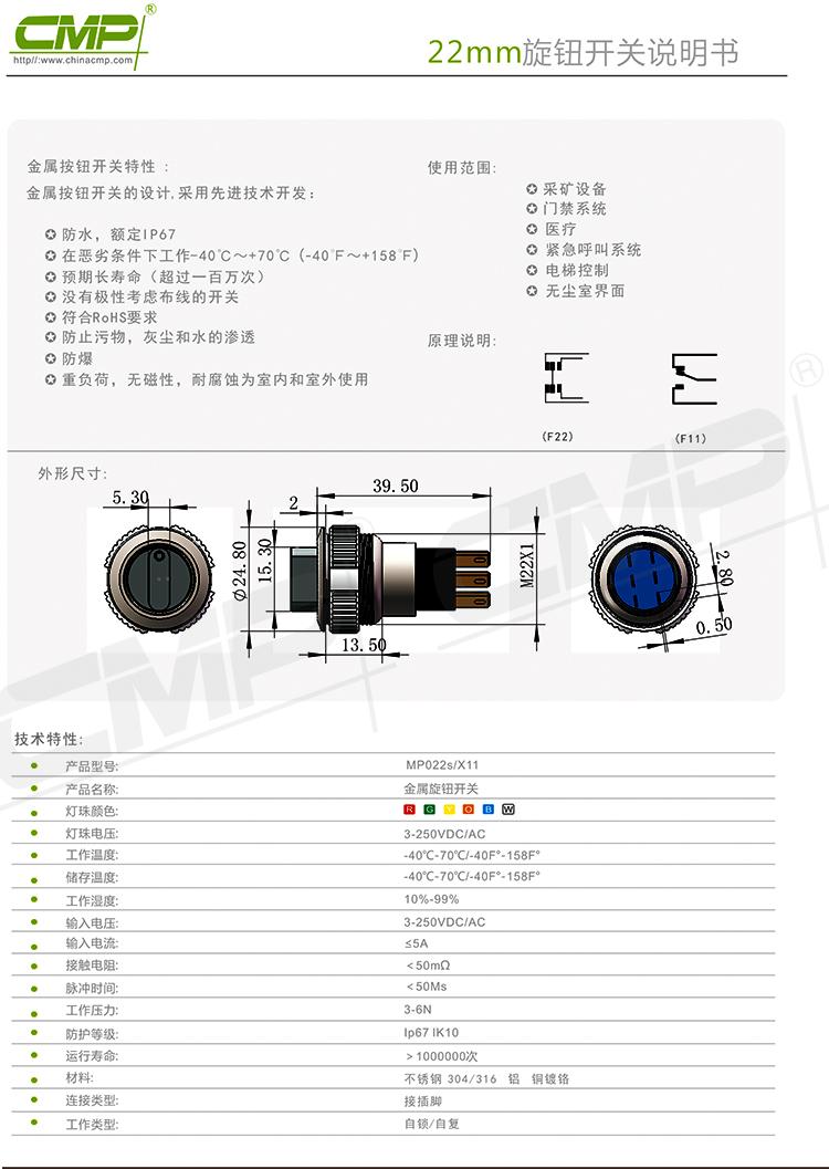 22MM Piezoelectric switch