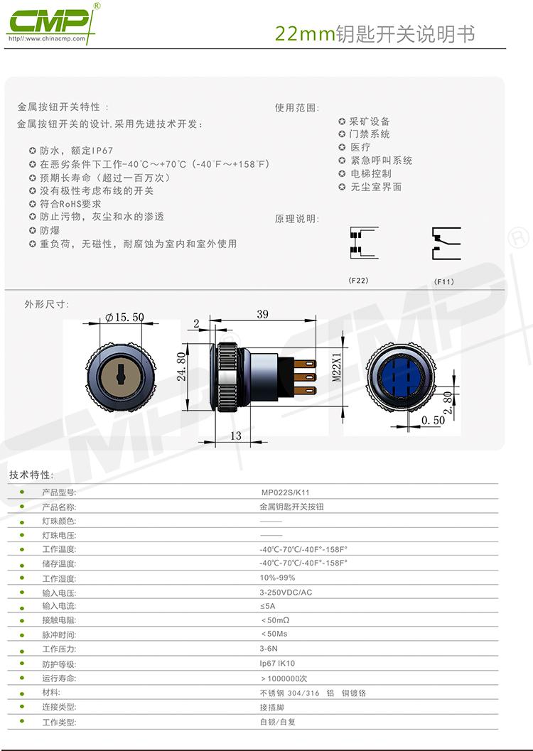 22MM Metal key switch